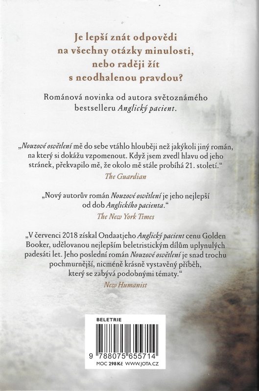 (Zdroj textu: přebal knihy "Nouzové osvětlení", 2019, JOTA, Brno, ISBN 978-80-7565-571-4.)