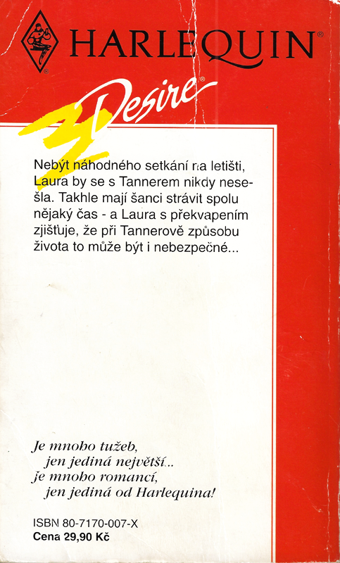 Harlequin - Desire č. 44 N 08/93 | Nebýt náhodného setkání na letišti, Laura by se s Tannerem nikdy nesešla. Takhle mají šanci strávit spolu nějaký čas - a Laura s překvapením zjišťuje, že při Tannerově způsobu života to může být i nebezpečné...