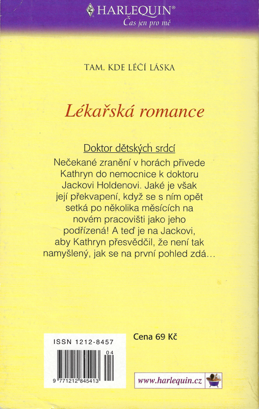 Harlequin - Lékařská romance č. 7 | Nečekané zranění v horách přivede Kathryn do nemocnice k doktoru Jackovi Holdenovi. Jaké je však její překvapení, když se s ním opět setká po několika měsících na novém pracovišti jako jeho podřízená! A teď je na Jackovi, aby Kathryn přesvědčil, že není tak namyšlený, jak se na první pohled zdá...