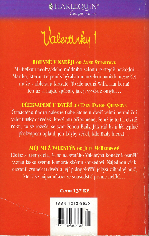 Harlequin - Valentinky 1 - č. 33 G 01/01 | Tři romantické příběhy k svátku zamilovaných | Bohyně v naději (STUARTOVÁ, Anne), Překvapení u dveří (QUINNOVÁ, Tara Taylor), Můj muž Valentýn (MCBRIDEOVÁ, Jule)