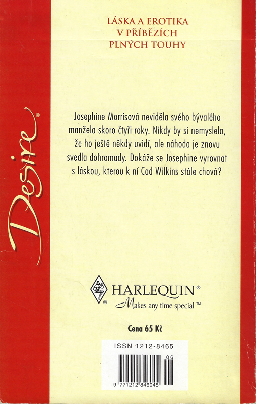Harlequin - Desire č. 372 N 06/00 | Josephine Morrisová neviděla svého bývalého manžela skoro čtyři roky. Nikdy by si nemyslela, že ho ještě někdy uvidí, ale náhoda je znovu svedla dohromady. Dokáže se Josephine vyrovnat s láskou, kterou k ní Cad Wilkins stále chová?