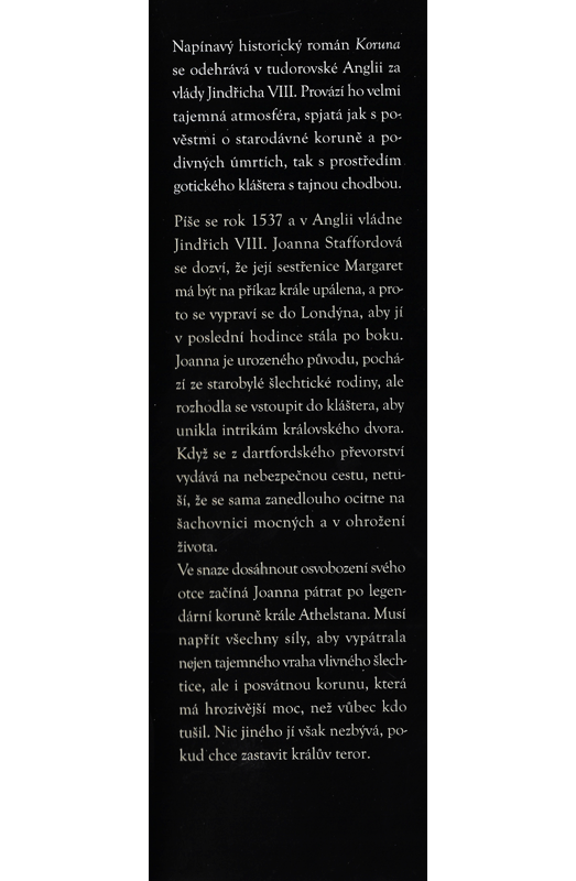 (Zdroj textu: přebal knihy "Koruna", 2014, Knižní klub, Praha, ISBN 978-80-242-4402-0.)