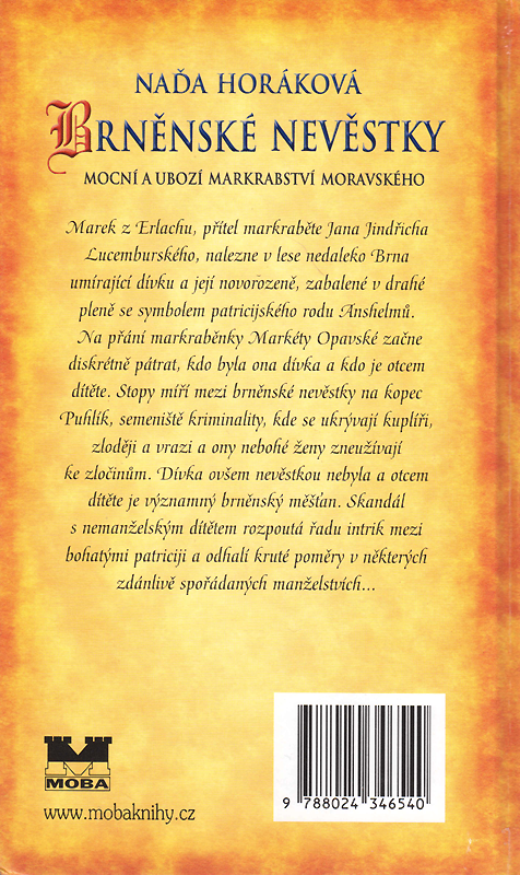 Mocní a ubozí markrabství moravského... Marek z Erlachu, přítel markraběte Jana Jindřicha Lucemburského, nalezne v lese nedaleko Brna umírající dívku a její novorozeně, zabalené v drahé pleně se symbolem patricijského rodu Anshelmů. Na přání markraběnky Markéty Opavské začne diskrétně pátrat, kdo byla ona dívka a kdo je otcem dítěte...