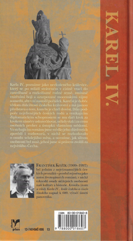 KOŽÍK, František František Kožík (1909-1997) byl jedním z nejvýznamnějších českých prozaiků - proslul zejména jako autor životopisných románů, v nichž vykreslil osudy stěžejních osobností naší kultury a historie. Kroniku života a vlády Karla IV., krále českého a císaře římského napsal k 600. výročí úmrtí panovníka.