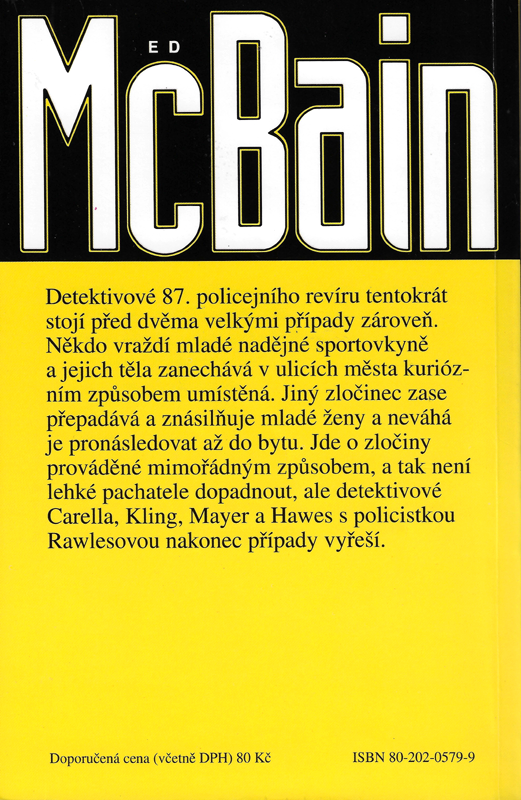 Detektivové 87. policejního revíru tentokrát stojí před dvěma velkými případy zároveň. Někdo vraždí mladé nadějné sportovkyně a jejich těla zanechává v ulicích města kuriózním způsobem umístěná. Jiný zločinec zase přepadává a znásilňuje mladé ženy a neváhá je pronásledovat až do bytu...