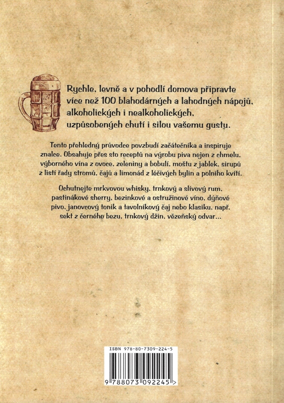 Tento přehledný průvodce povzbudí začátečníka a inspiruje znalce. Obsahuje přes sto receptů na výrobu piva nejen z chmelu, výborného vína z ovoce, zeleniny a bobulí, mostu z jablek, sirupů z listí řady stromů, čajů a limonád z léčivých bylin a polního kvítí.