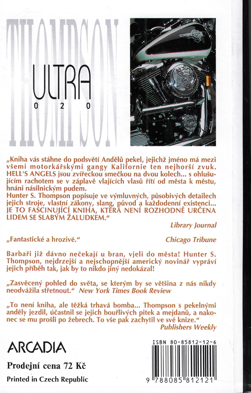Hunter S. Thompson popisuje ve výmluvných, působivých detailech jejich stroje, vlastní zákony, slang, původ a každodenní existenci... JE TO FASCINUJÍCÍ KNIHA, KTERÁ NENÍ ROZHODNĚ URČENA LIDEM SE SLABÝM ŽALUDKEM." – Library Journal