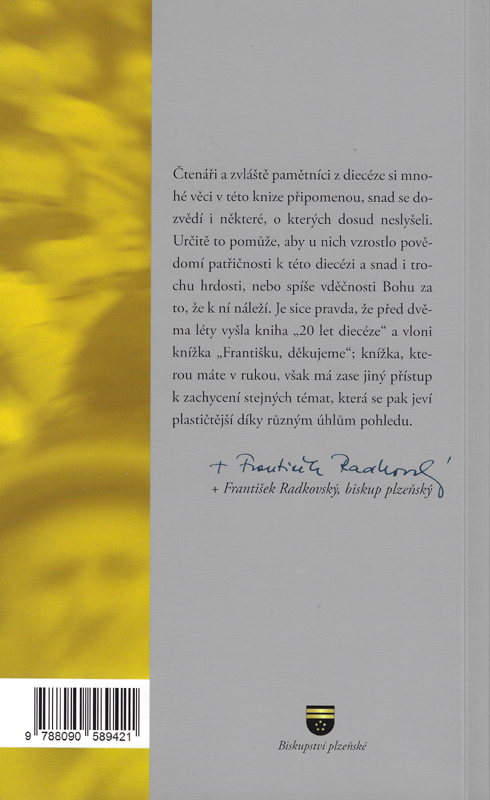 Čtenáři a zvláště pamětníci z diecéze si mnohé věci v této knize připomenou, snad se dozvědí i některé, o kterých dosud neslyšeli. Určitě to pomůže, aby u nich vzrostlo povědomí patřičnosti k této diecézi a snad i trochu hrdosti, nebo spíše vděčnosti Bohu za to, že k ní náleží. Je sice pravda, že před dvěma léty vyšla kniha „20 let diecéze" a vloni knížka „Františku, děkujeme"; knížka, kterou máte v rukou, však má zase jiný přístup k zachycení stejných témat, která se pak jeví plastičtější díky různým úhlům pohledu.