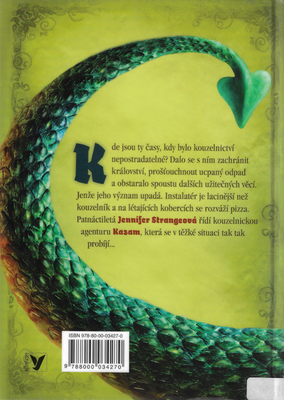 Kde jsou ty časy, kdy bylo kouzelnictví nepostradatelné? Dalo se s ním zachránit království, prošťouchnout ucpaný odpad a obstaralo spoustu dalších užitečných věcí. Jenže jeho význam upadá. Instalatér je lacinější než kouzelník a na létajících kobercích se rozváží pizza. Patnáctiletá Jenttifer Strangeová řídí kouzelnickou agenturu Kazam, která se v těžké situaci tak tak probíjí...