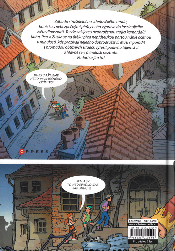 Záhada strašidelného středověkého hradu, honička s nebezpečnými piráty nebo výprava do fascinujícího světa dinosaurů. To vše zažijete s neohroženou trojicí kamarádů! Kuba, Petr a Zuzka se na útěku před nepřátelskou partou náhle ocitnou v minulosti, kde prožívají nejedno dobrodružství. Musí si poradit s hromadou obtížných situací, vyřešit podivná tajemství a hlavně se v minulosti neztratit. Podaří se jim to?