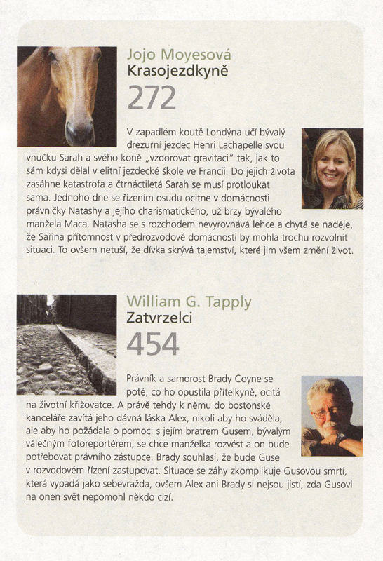 Raymond Khoury: Znamení - Terri Irwinová: Steve a já - Jojo Moyesová: Krasojezdkyně - William G. Tapply: Zatvrzelci. Pořadí v edici: 106.