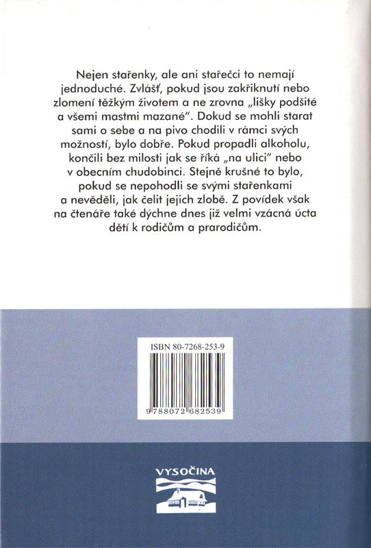 Nejen stařenky, ale ani stařečci to nemají jednoduché. Zvlášť, pokud jsou zakřiknutí nebo zlomení těžkým životem a ne zrovna "lišky podšité a všemi mastmi mazané". Dokud se mohli starat sami o sebe a na pivo chodili v rámci svých možností, bylo dobře. Pokud propadli alkoholu, končili bez milosti jak se říká "na ulici" nebo v obecním chudobinci. Stejně krušné to bylo, pokud se nepohodli se svými stařenkami a nevěděli, jak čelit jejich zlobě. Z povídek však na čtenáře také dýchne dnes již velmi vzácná úcta dětí k rodičům a prarodičům.
