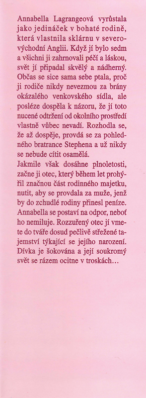Annabella Lagrangeová vyrůstala jako jedináček v bohaté rodině, která vlastnila sklárnu v severovýchodní Anglii. Když jí bylo sedm a všichni ji zahrnovali péčí a láskou, svět jí připadal skvělý a nádherný. Občas se sice sama sebe ptala, proč ji rodiče nikdy nevezmou za brány okázalého venkovského sídla, ale posléze dospěla k názoru, že jí toto nucené odtržení od okolního prostředí vlastně vůbec nevadí. Rozhodla se, že až dospěje, provdá se za pohledného bratrance Stephena a už nikdy se nebude cítit osamělá.