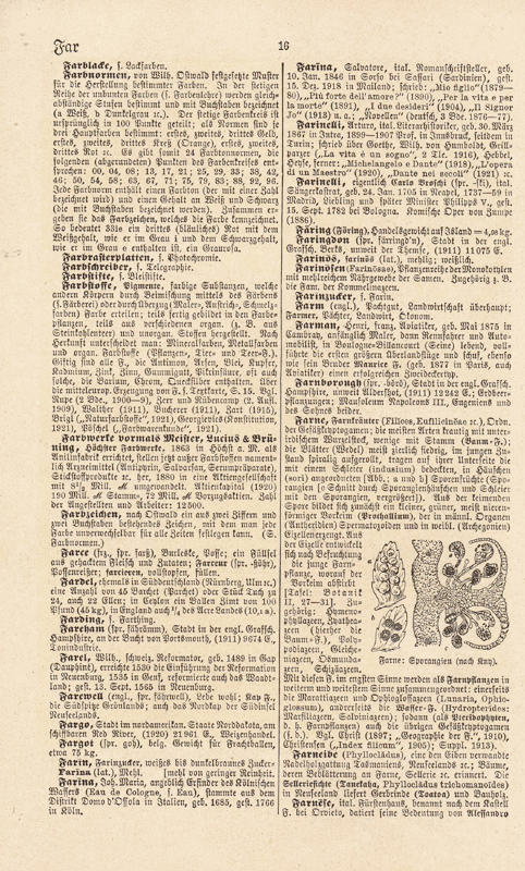 Německá encyklopedie z roku 1923 s mnoha černobílými a několika barevnými vyobrazeními.