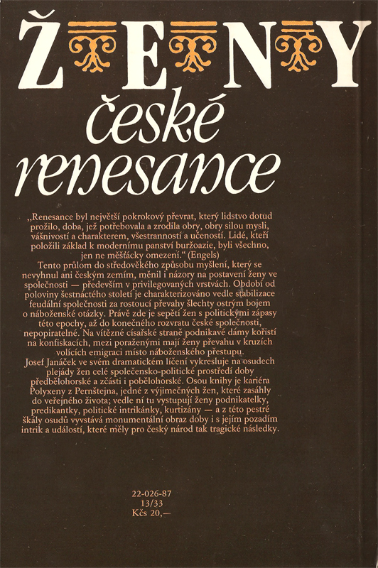 Josef Janáček vykresluje ve svém dramatickém líčení na osudech plejády žen celé společensko-politické prostředí doby předběhlohorské a zčásti i pobělohorské.