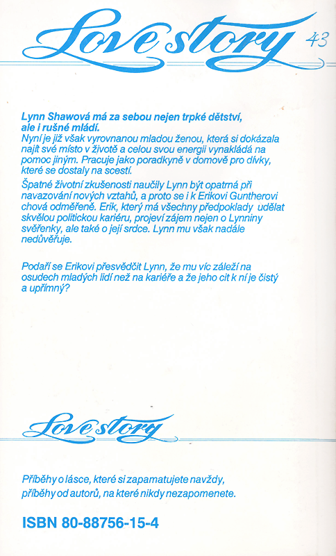 Love story 43 B 7/94. Lynn má za sebou trpké dětství a rušné mládí. Nyní je již vyrovnanou mladou ženou a pomáhá jiným - pracuje jako poradkyně v domově pro dívky, které se dostaly na scestí. Špatné životní zkušenosti ji naučily být opatrná při navazování vztahů, a proto se i k Erikovi chová odměřeně. Erik ale projeví zájem nejen o její svěřenky, ale také o její srdce. Lynn mu však nedůvěřuje.
