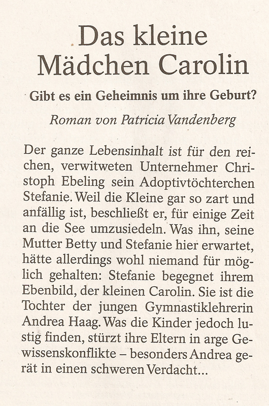 Das kleine Mädchen Carolin: Patricia Vandenberg
