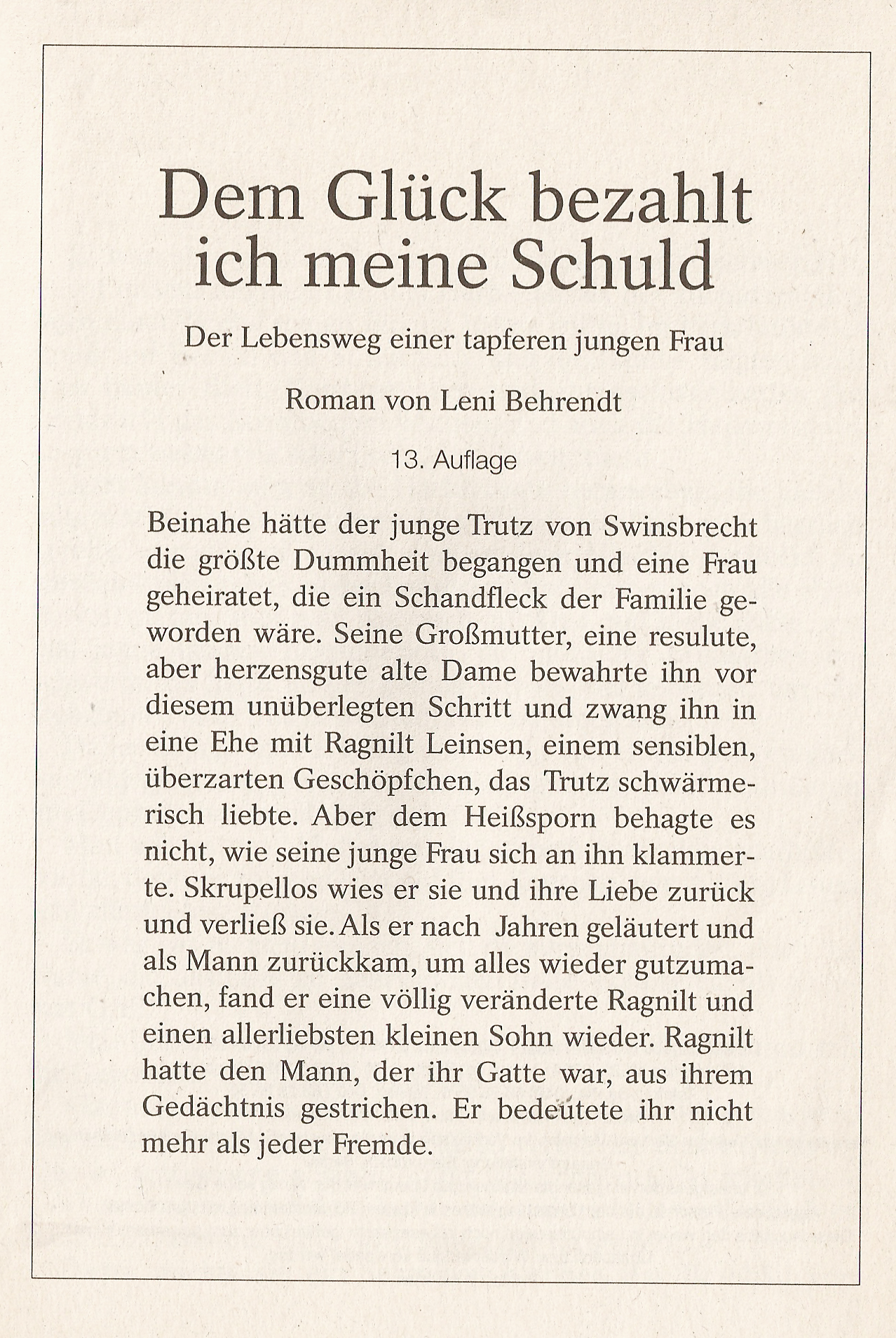 Dem Glück bezahlt ich meine Schuld: Leni Behrendt