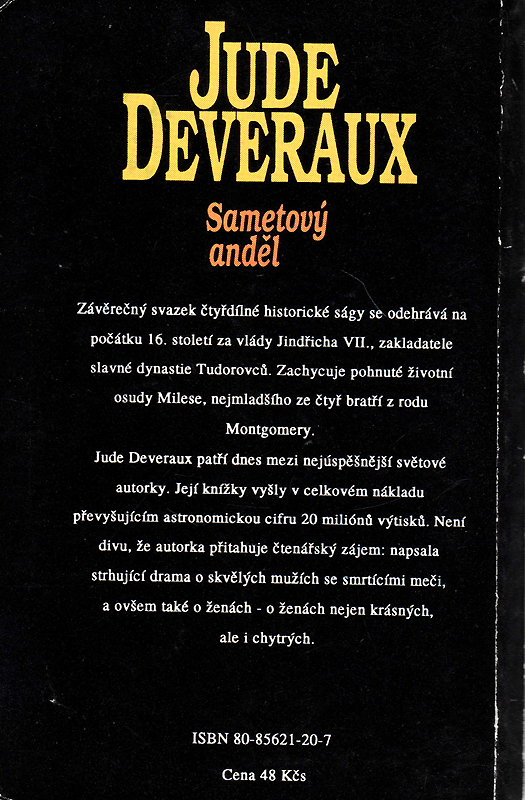 Jude Deveraux patří dnes mezi nejúspěšnější světové autorky. Její knížky vyšly v celkovém nákladu převyšujícím astronomickou cifru 20 miliónů výtisků. Není divu, že autorka přitahuje čtenářský zájem: napsala strhující drama o skvělých mužích se smrtícími meči, a ovšem také o ženách - o ženách nejen krásných, ale i chytrých.