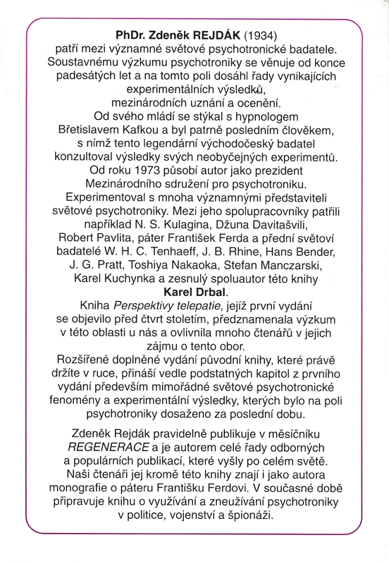Kniha Perspektivy telepatie, jejíž první vydání se objevilo před čtvrt stoletím, předznamenala výzkum v této oblasti u nás a ovlivnila mnoho čtenářů v jejich zájmu o tento obor.