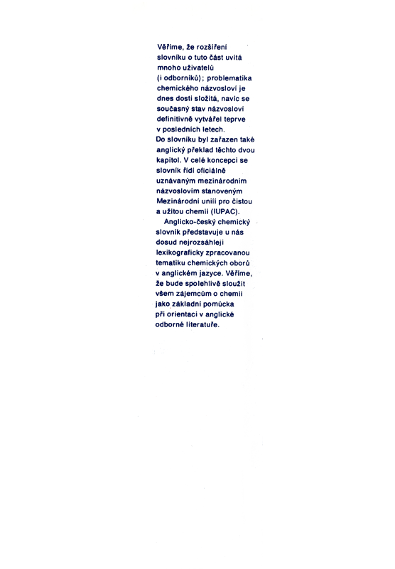 Věříme, že rozšíření slovníku o tuto část uvítá mnoho uživatelů (i odborníků); problematika chemického názvosloví je dnes dosti složitá, navíc se současný stav názvosloví definitivně vytvářel teprve v posledních letech.