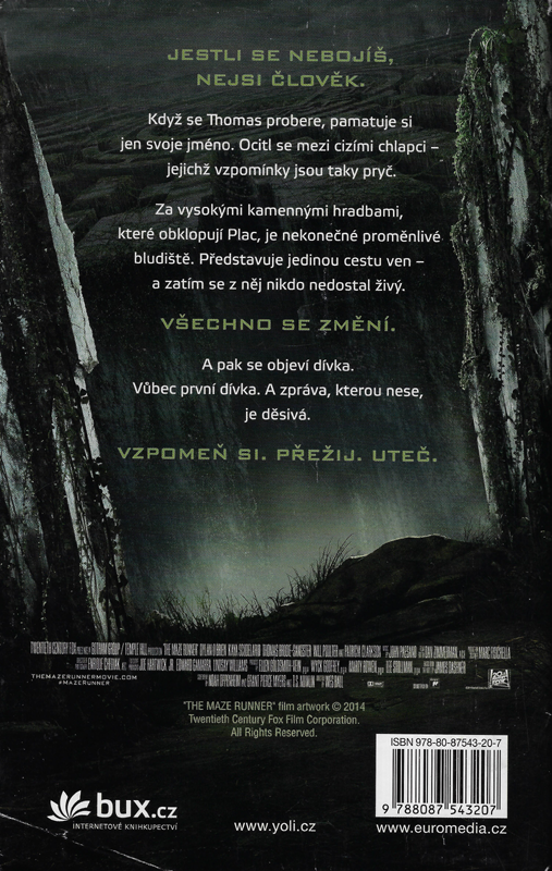 VŠECHNO SE ZMĚNÍ... Když se Thomas probudí ve výtahu, nepamatuje si nic než své křestní jméno. Nemá žádné vzpomínky na rodiče ani na domov a netuší, jak se dostal tam, kde je. Jeho paměť je prázdná.