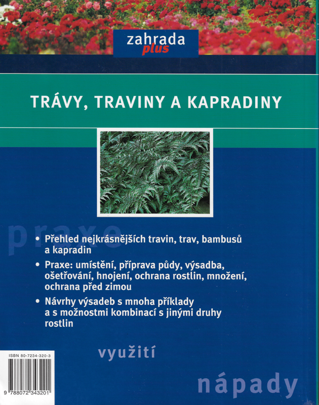 Přehled nejkrásnějších travin, trav, bambusů a kapradin | Praxe: umístění, příprava půdy, výsadba, ošetřování, hnojení, ochrana rostlin, množení, ochrana před zimou | Návrhy výsadeb s mnoha příklady a s možnostmi kombinací s jinými druhy rostlin