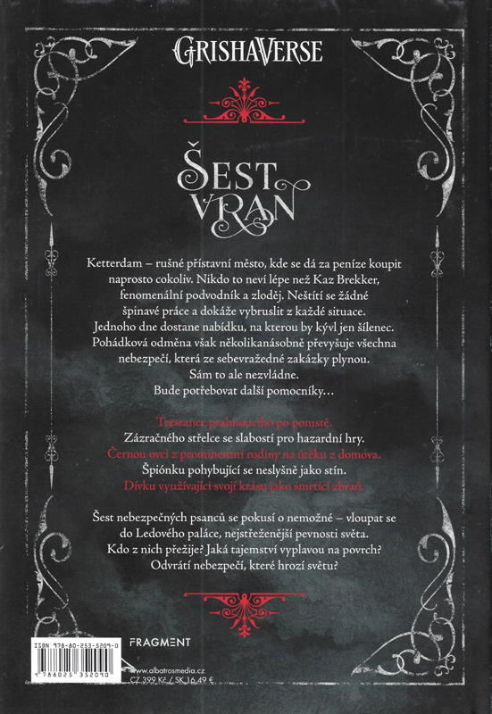 (Zdroj textu a foto: přebal knihy "Šest vran", 2021, Fragment, Praha, ISBN 978-80-253-5209-0.)