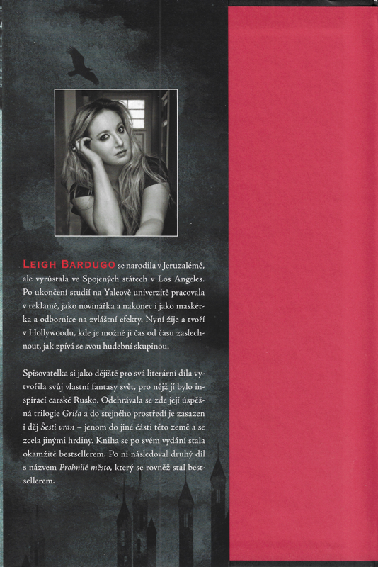 BARDUGO, Leigh Leigh Bardugo se narodila v Jeruzalémě, ale vyrůstala ve Spojených státech v Los Angeles, Po ukončení studií na Yaleově univerzitě pracovala v reklamě, jako novinářka a nakonec i jako maskérka a odbornice na zvláštní efekty. Nyní žije a tvoří v Hollywoodu, kde je možněji čas od času zaslechnout, jak zpívá se svou hudební skupinou.