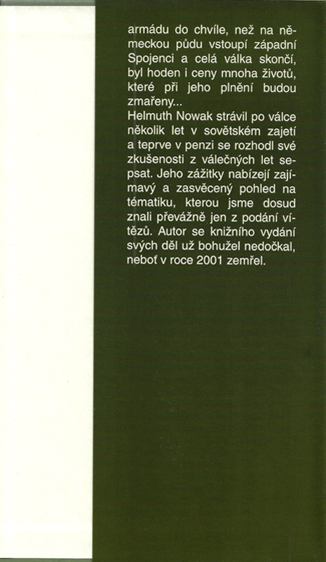 Helmuth Nowak strávil po válce několik let v sovětském zajetí a teprve v penzi se rozhodl své zkušenosti z válečných let sepsat. Jeho zážitky nabízejí zajímavý a zasvěcený pohled na tématiku, kterou jsme dosud znali převážně jen z podání vítězů. Autor se knižního vydání svých děl už bohužel nedočkal, neboť v roce 2001 zemřel.