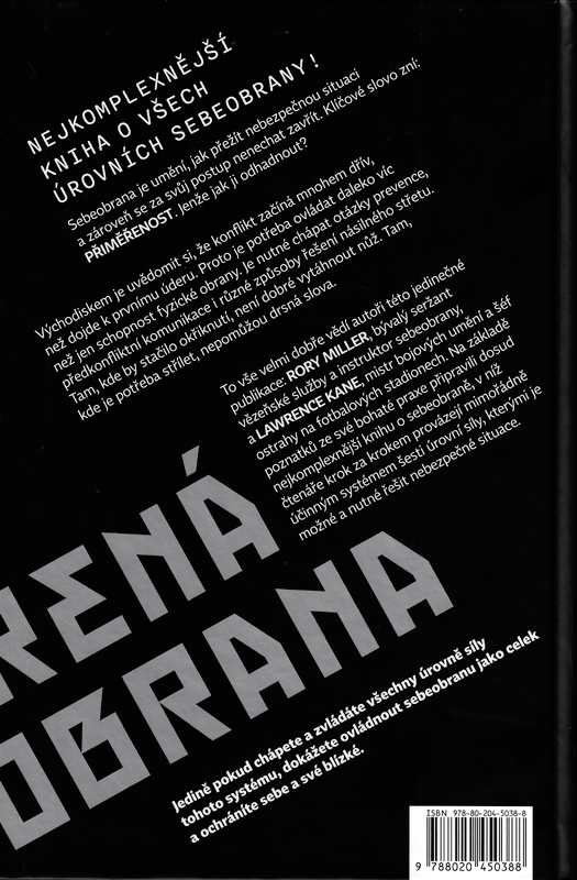 To vše velmi dobře vědí autoři této jedinečné publikace: RORY MILLER, bývalý seržant vězeňské služby a instruktor sebeobrany, a LAWRENCE KANE, mistr bojových umění a šéf ostrahy na fotbalových stadionech. Na základě poznatků ze své bohaté praxe připravili dosud nejkomplexnější knihu o sebeobraně, v níž čtenáře krok za krokem provázejí mimořádně účinným systémem šesti úrovní síly, kterými je možné a nutné řešit nebezpečné situace.
