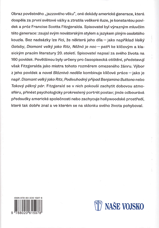 Obraz pověstného „jazzového věku", oné dekády americké generace, která dospěla za první světové války a ztratila veškeré iluze, je konstantou povídek a próz Francise Scotta Fitzgeralda. Spisovatel byl výrazným mluvčím této generace: zaujal svým novátorským stylem a jazykem plným osobitého kouzla. Bez nadsázky lze říci, že některá jeho díla — jako například Velký Gatsby, Diamant velký jako Ritz, Něžná je noc — patří ke klíčovým a klasickým pracím literatury 20. století. Spisovatel napsal za svého života na 160 povídek. Povětšinou byly určeny pro časopisecká otištění, představují však Fitzgeralda jako mistra tohoto rozměrem omezeného žánru. Výbor z jeho povídek a novel Bláznivá neděle kombinuje klíčové práce — jako je např. Diamant velký jako Ritz, Podivuhodný případ Benjamina Buttona nebo Takový pěkný pár. Fitzgerald se v nich pokouší zachytit dobovou atmosféru, přinést psychologicky prokreslený portrét postav; jinde odbourává předsudky americké společnosti nebo zachycuje hollywoodské prostředí, které tak dobře znal a ve kterém se na sklonku svého života pohyboval.