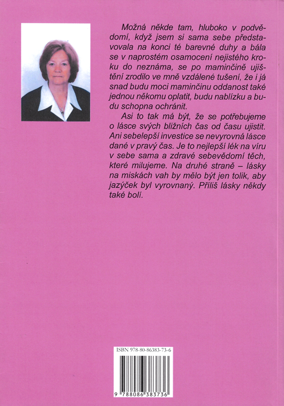 Možná někde tam, hluboko v podvědomí, když jsem si sama sebe představovala na konci té barevné duhy a bála se v naprostém osamocení nejistého kroku do neznáma, se po maminčině ujištění zrodilo ve mně vzdálené tušení, že i já snad budu moci maminčinu oddanost také jednou někomu oplatit, budu nablízku a budu schopna ochránit.