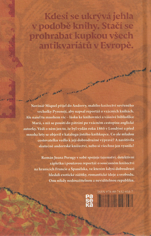 Román Joana Perugy v sobě spojuje tajemství, detektivní zápletku i poutavou reportáž o současném knížectví na hranicích Francie a Španělska, ve kterém kdysi dobrodruzi hledali exotické zážitky, romantické ideje a svobodu. Onu nikdy nedosažitelnou a neviditelnou republiku.