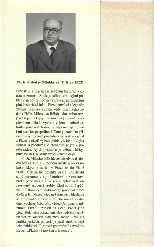 V pověstech a legendách vyprávěných v této knize se nepřímo zobrazuje tisíciletá historie Plzně a jejího nejbližšího okolí. Jsou to příběhy, které mají vždy určitý historický základ a jež opředla lidová fantazie romantikou a tajemstvím někdy až pohádkovým...