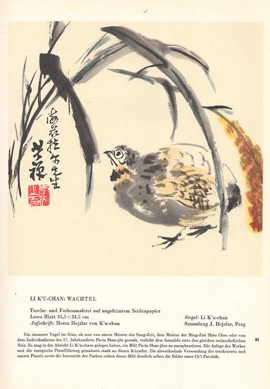 Die in diesem Band reproduzierten Bilder sind fast ausnahmslos in den Jahren 1920-1955 entstanden. Es handelt sich um Werke reifer chinesischer Maler, die der europäischen Öffentlichkeit grösstenteils aus den Ausstellungen der verflossenen dreissig Jahre bekannt sind.