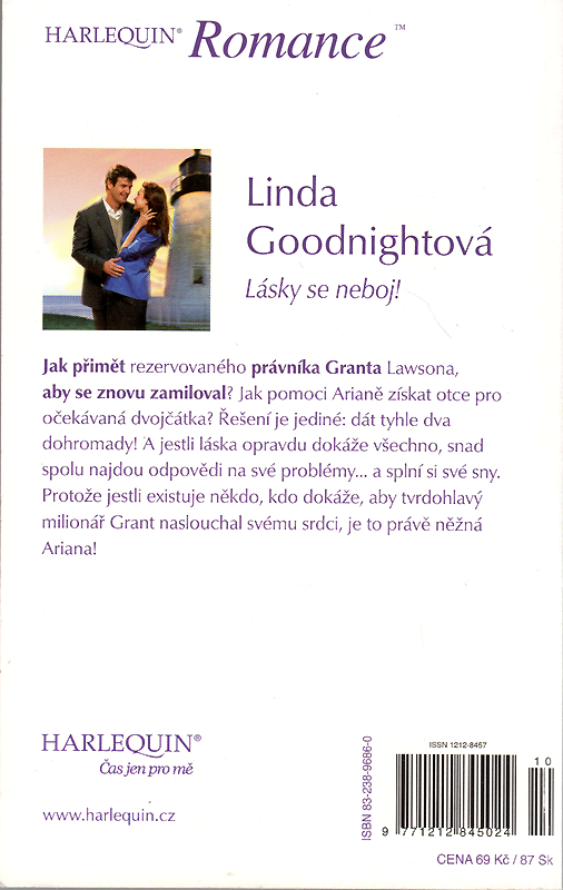 Harlequin Edice: Romance č. 689 B 10/05 | Minisérie: Sjednané svatby | Jak přimět rezervovaného právníka Granta Lawsona, aby se znovu zamiloval? Jak pomoci Arianě získat otce pro očekávaná dvojčátka? Řešení je jediné: dát tyhle dva dohromady! A jestli láska opravdu dokáže všechno, snad spolu najdou odpovědi na své problémy... a splní si své sny.