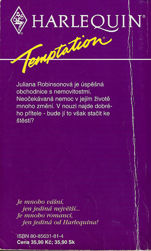 Harlequin Temptation č. 8 U 06/93 | Anatomie polibku II. | Juliana Robinsonová je úspěšná obchodnice s nemovitostmi. Neočekávaná nemoc v jejím životě mnoho změní. V nouzi najde dobré ho přítele - bude jí to však stačit ke štěstí?
