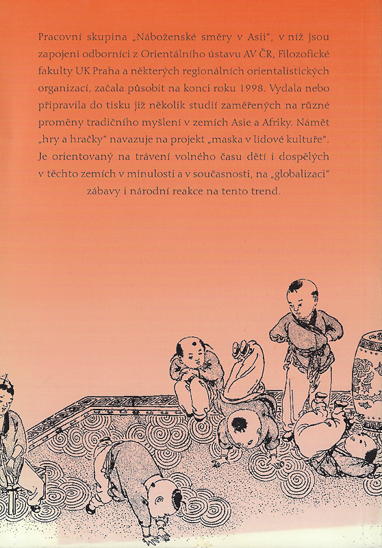 Pracovní skupina „Náboženské směry v Asii", v níž jsou zapojeni odborníci z Orientálního ústavu AV ČR, Filozofické fakulty UK Praha a některých regionálních orientalistických organizací, začala působit na konci roku 1998. Vydala nebo připravila do tisku již několik studií zaměřených na různé proměny tradičního myšlení v zemích Asie a Afriky. Námět „hry a hračky" navazuje na projekt „maska v lidové kultuře", je orientovaný na trávení volného času dětí i dospělých v těchto zemích v minulosti a v současnosti, na „globalizaci" zábavy i národní reakce na tento trend.