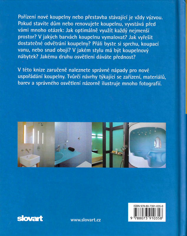 V této knize zaručeně naleznete správné nápady pro nové uspořádání koupelny. Tvůrčí návrhy týkající se zařízení, materiálů, barev a správného osvětlení názorně ilustruje mnoho fotografií.